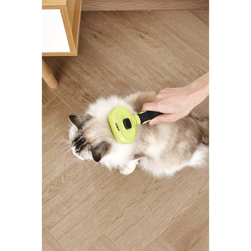 M-PETS Click & Groom 1-Click Cleaning Pin Brush, evcil hayvanların tüy bakımını daha hızlı, hijyenik ve pratik hale getiren güvenilir bir bakım çözümü sunar.