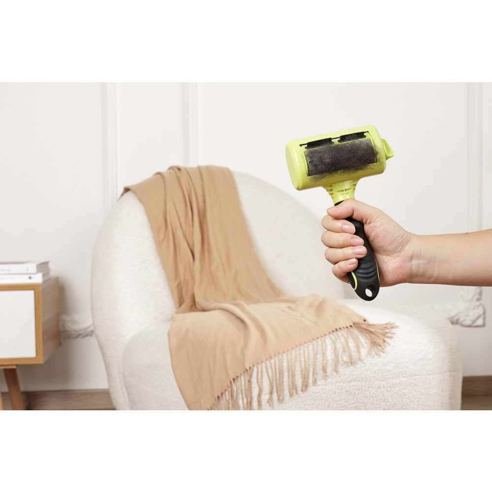 M-PETS Click & Groom Bristle Brush, evcil hayvan tüylerini koltuk, halı, yatak ve kıyafet gibi farklı kumaş yüzeylerden kolayca temizlemek için tasarlanmış pratik bir temizlik aracıdır. Elektrostatik yüzeyi sayesinde tüyleri etkili şekilde toplar ve özel haznesinde biriktirir. İki yönlü kullanım özelliği sayesinde fırça ileri ve geri hareket ettirilerek hızlı temizlik sağlar. Yeniden kullanılabilir yapısı sayesinde tek kullanımlık ürünlere ihtiyaç duyulmadan uzun süreli kullanım sunar. Ergonomik sap tasarımı rahat bir tutuş sağlayarak günlük temizlik işlerini kolaylaştırır.