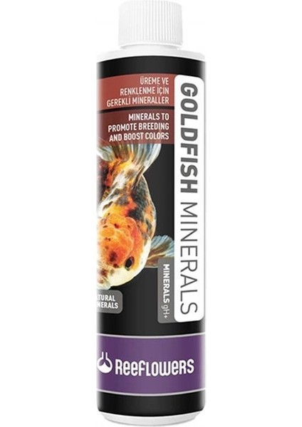 - ReeFlowers GoldFish Minerals Japon balıklarının ihtiyaç duyduğu elementleri içerir. Akvaryumlarda kullanılan sular, mineral yönünden balıkların doğal yaşam alanlarındaki sulara göre yetersizdir. İskelet gelişimi ve yaşamsal faaliyetleri için ihtiyaç duyduğu minerali alamayan canlı zamanla birçok yönden zayıflar, gelişimi yavaşlar, renkleri matlaşır ve sağlıksızlaşır.