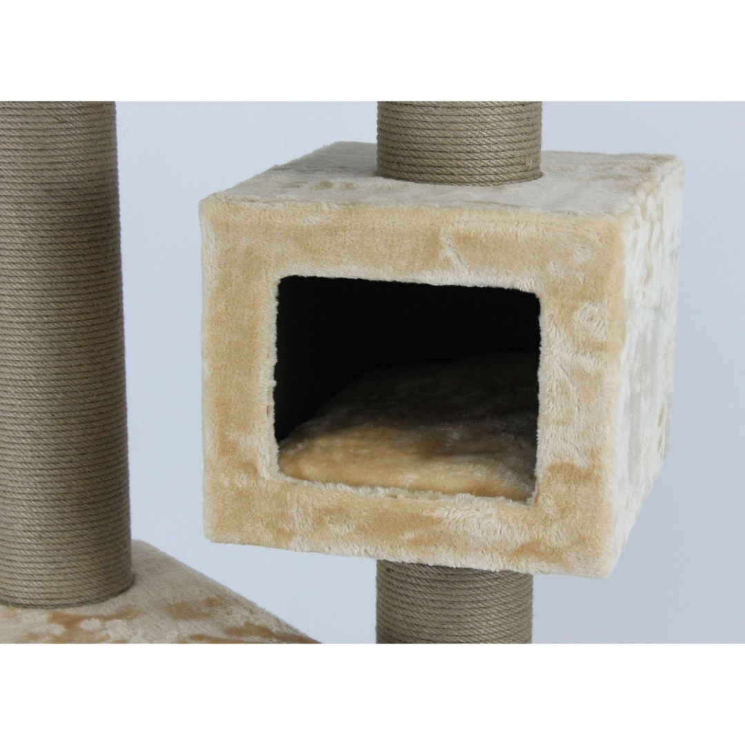 - Tırmalama direklerinde kullanılan 6mm doğal jüt halat, masuralara her noktadan yapıştırılarak sağlamlık en üst düzeye çıkarılmıştır. Tırmalama direklerinin alt ve üst kapaklarında MDF kullanılmaktadır.